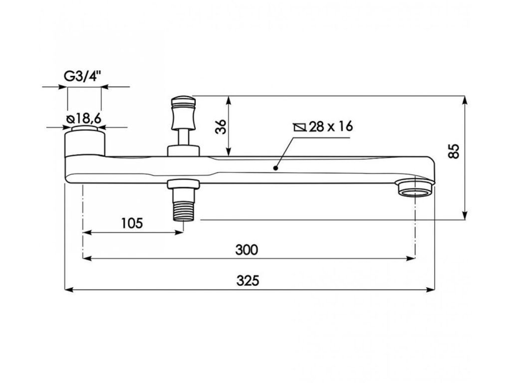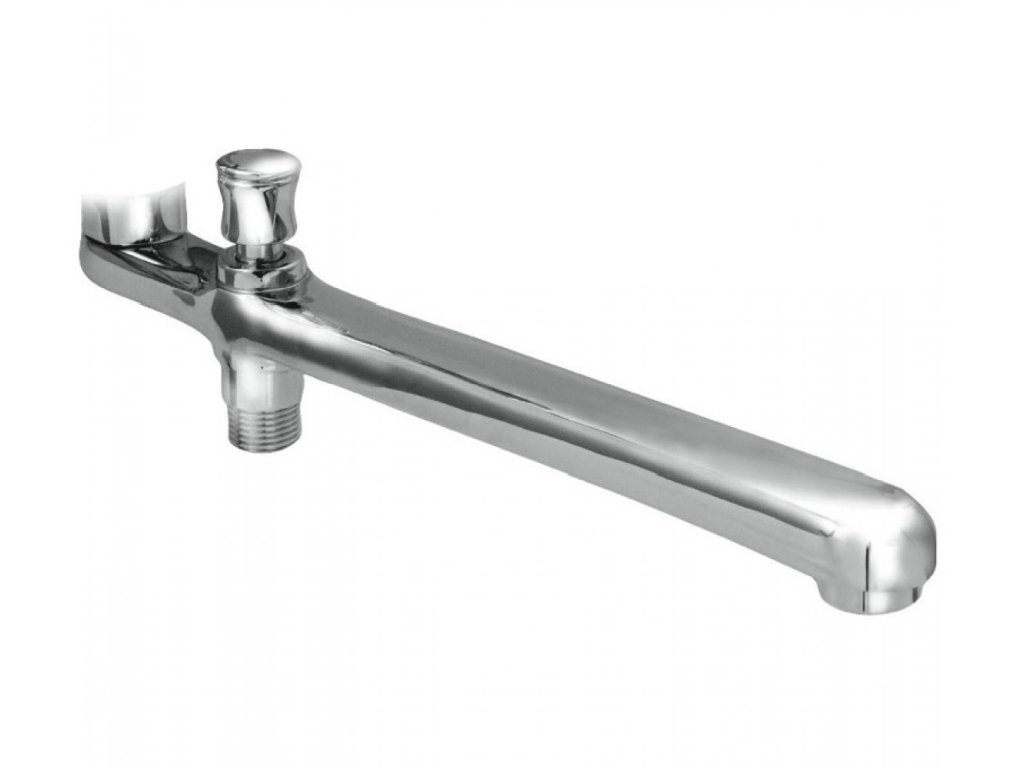 Rovné liate výtokové rameno dĺžky 300 mm, so zabudovaným prepínačom, k vaňovej stenovej batérii pre bytové jadrá. Kovové, v chrómovej povrchovej úprave. Osadené celokovovým perlátorom.