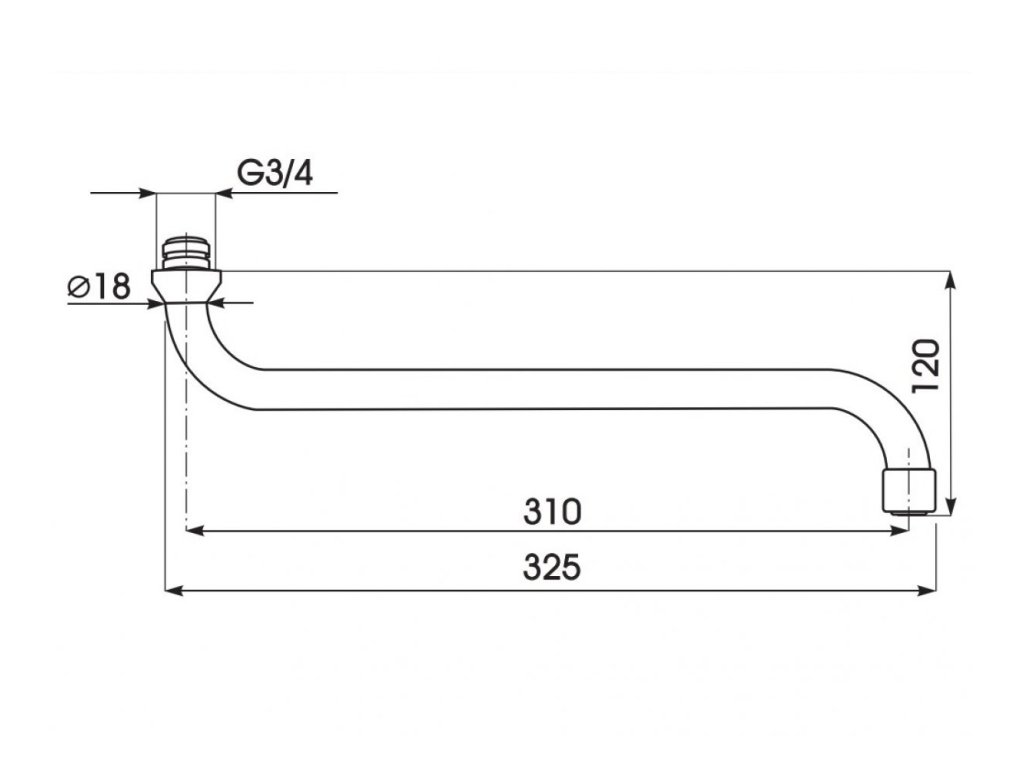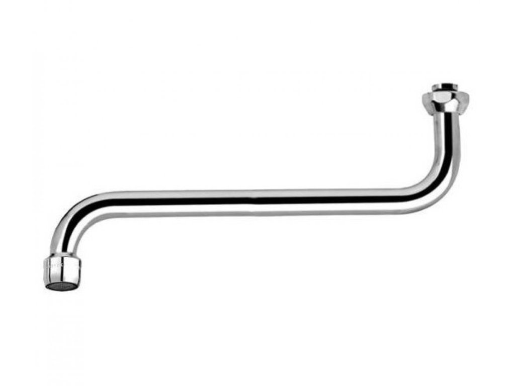 Trúbkové liate výtokové rameno k stenovým vaňovým batériám pre bytové jadrá. Osadené celokovovým perlátorom.