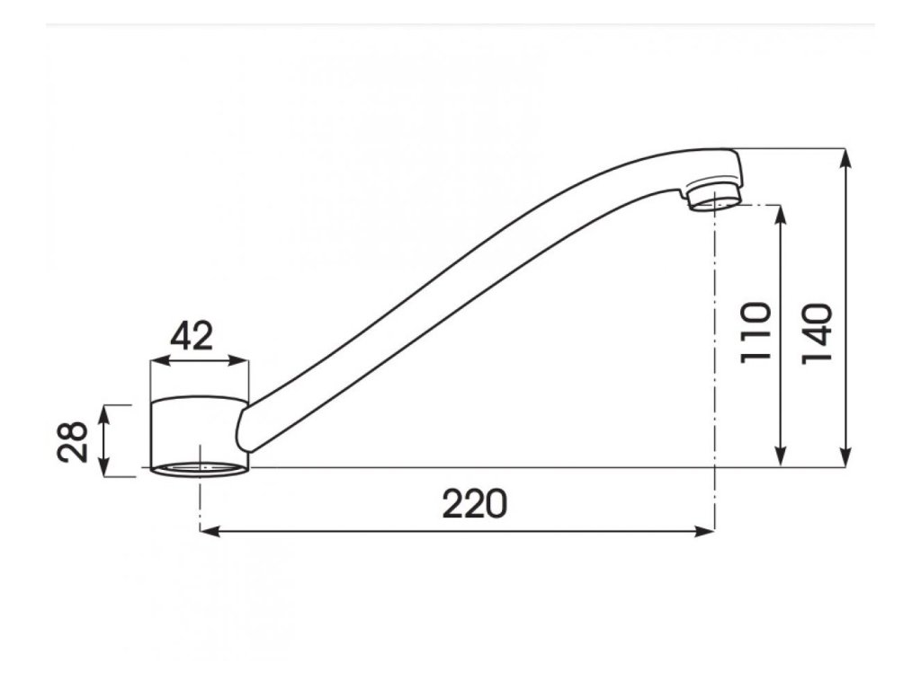 Liate ploché výtokové ramienko k stojankovým drezovým batériám, osadené celokovovým perlátorom. Pre vodovodné batérie ZR/LU/OR/MA/MO 3113 značky Sagittarius.