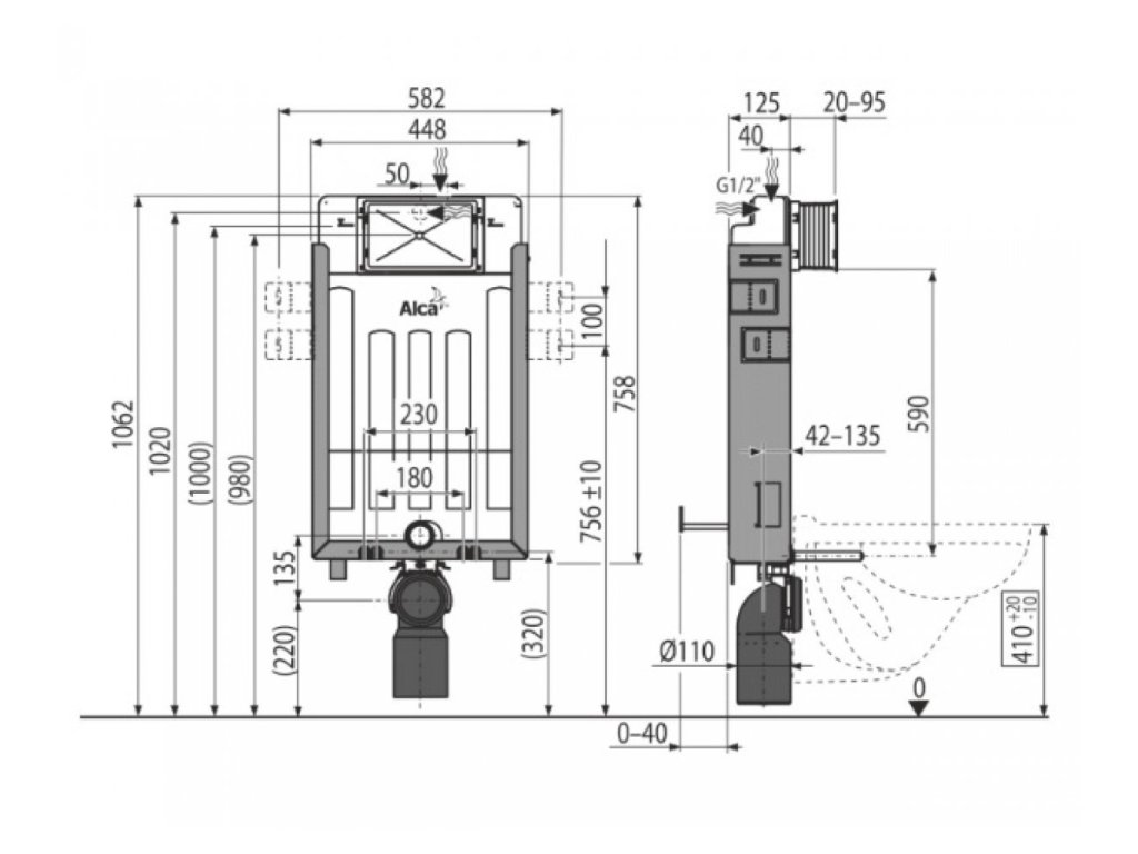Pre montáž závesného WC s pripojovacím rozstupom 180 mm alebo 230 mm