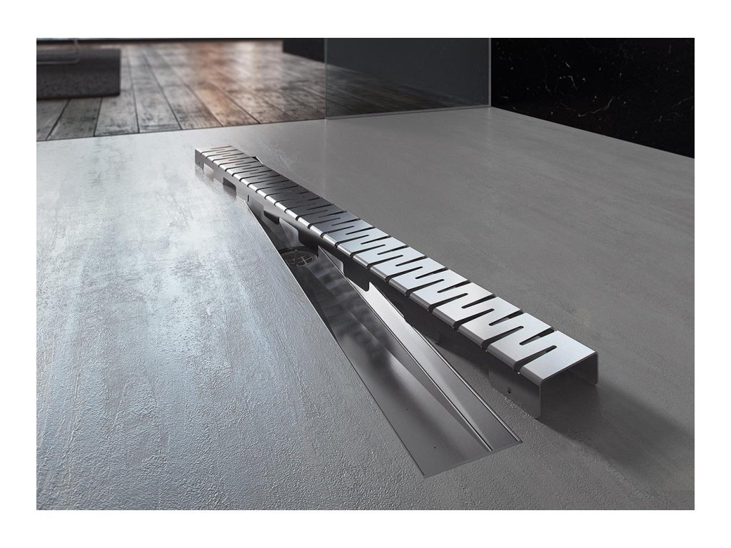 Rošt ZIP značky Alcaplast, pre líniové podlahové žľaby, matný nerez.