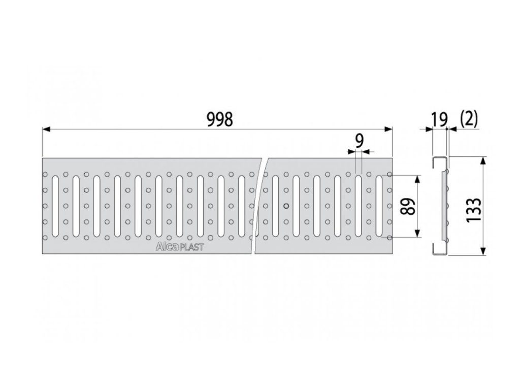 Rošt značky Alcaplast, určený pre vonkajší žľab AVZ102 pozink "C" profil A15