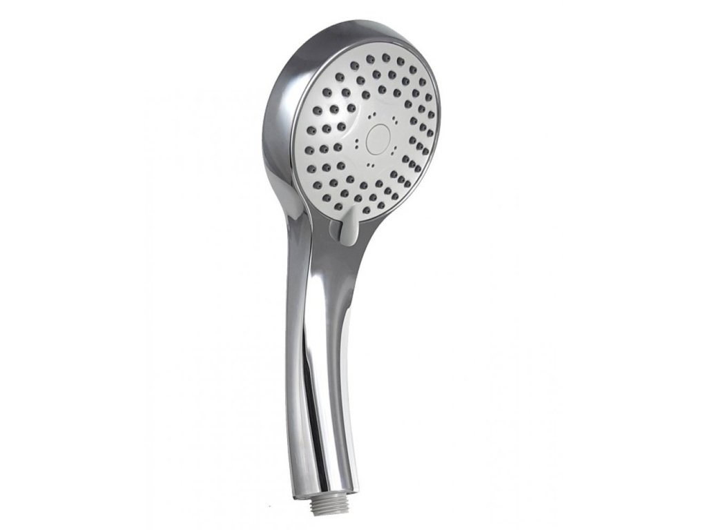 Plastová ručná sprcha s možnosťou prepnutia medzi tromi režimami prúdu: dážď, masáž, dážď+masáž.