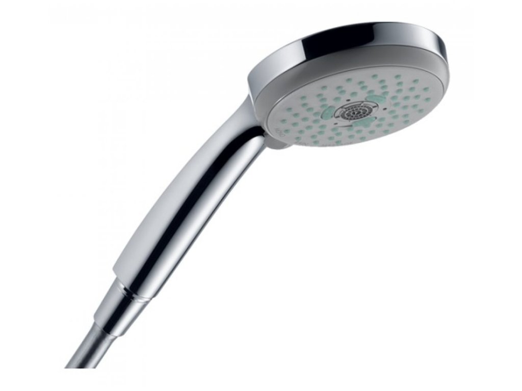 CROMA 100 Multi je 3-polohová ručná sprcha s druhmi prúdu Rain, masážny prúd a MonoRain, ktoré možno prepínať otočením koncovky.