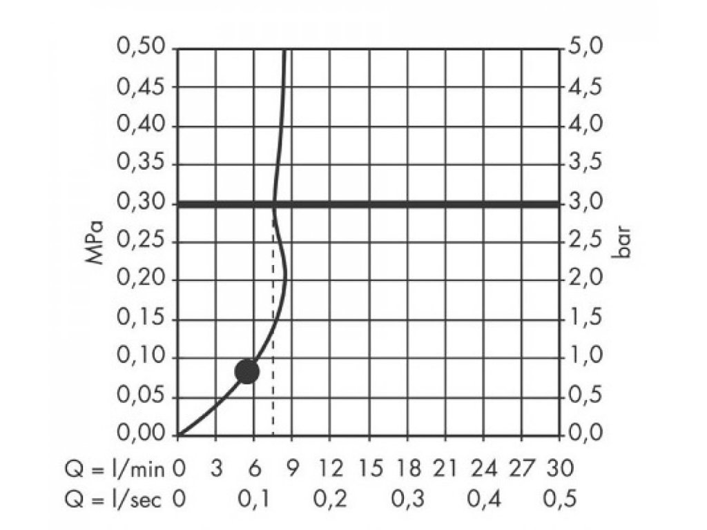 Maximálny prietok pri 0,3 MPa: 9 l/min.