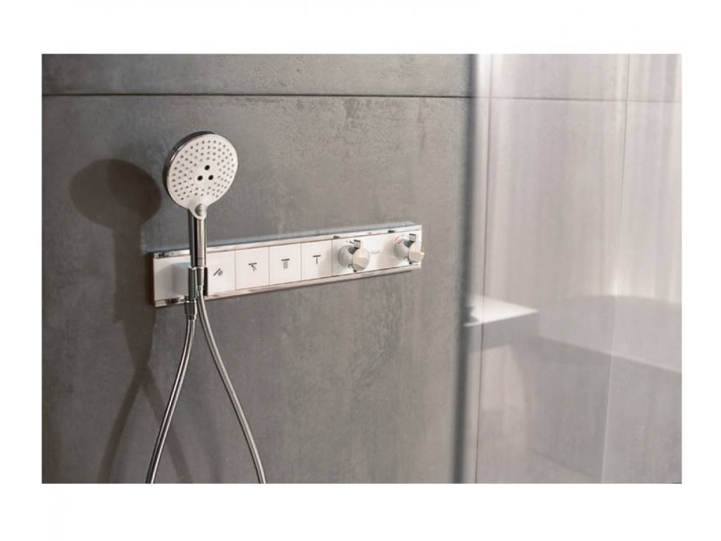 Ručná sprcha Raindance Select S od Hansgrohe ponúka moderné riešenie sprchovania s trojicou rozličných prúdov – jemný Rain, vzdušný RainAir a masážny Whirl – ktoré zabezpečujú maximálny komfort pri každom použití. Vďaka dvojplášťovej konštrukcii zostáva povrch príjemne chladný na dotyk, zatiaľ čo tlačidlo Select umožňuje rýchlu a jednoduchú zmenu režimu prúdu jedným stlačením, bez potreby používať obe ruky.