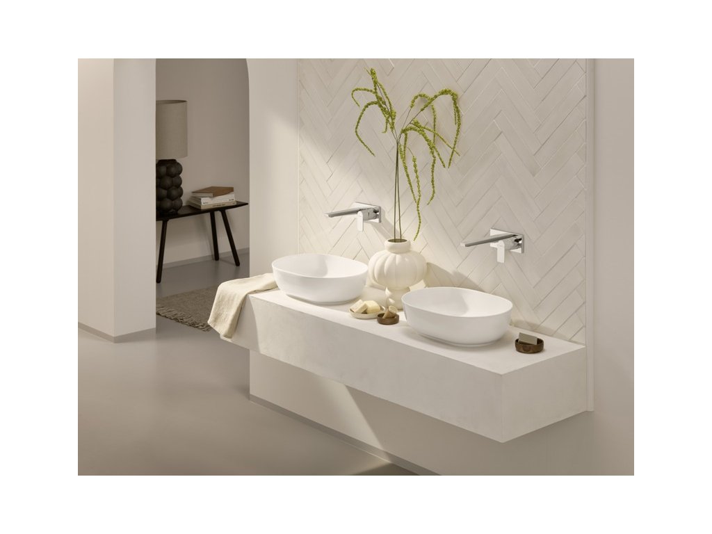 HANSASTELA - nadomietková časť podomietkovej vodovodnej batérie, určenej pre umývadlá. S štvorcovou rozetou a krycou objímkou.