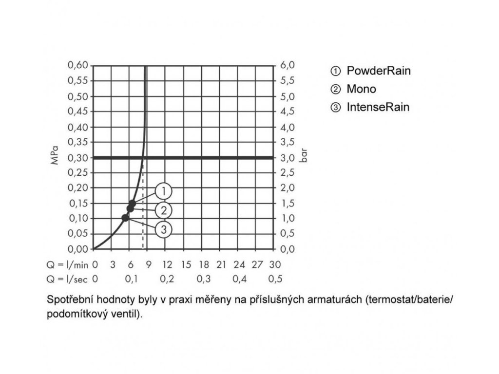 Prietokové množstvo prúdu Rain (pri 0,3 MPa): 8,2 l/min EcoSmart