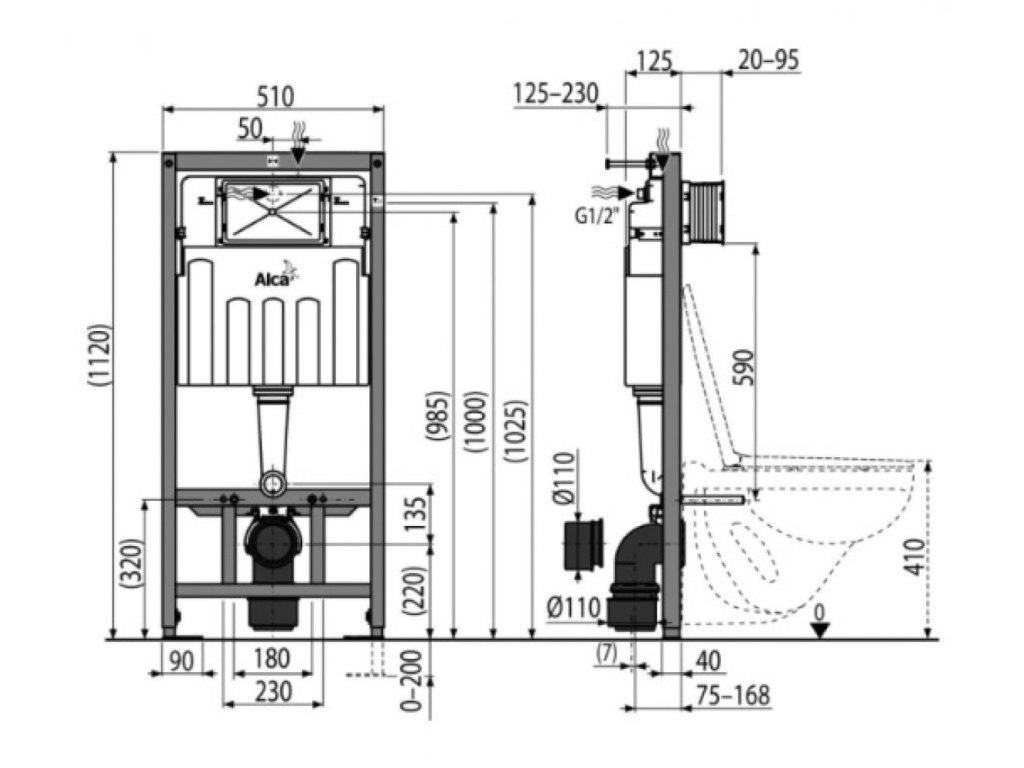 Pre montáž závesného WC s pripojovacím rozstupom 180 mm alebo 230 mm
