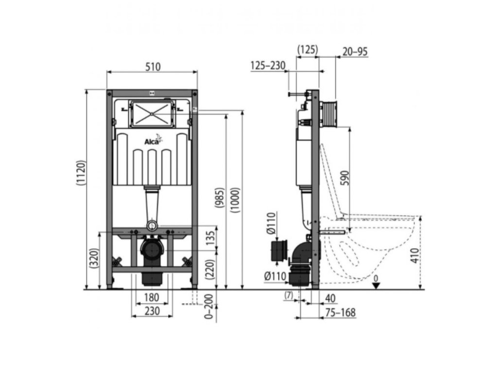 Pre montáž závesného WC s pripojovacím rozstupom 180 mm alebo 230 mm