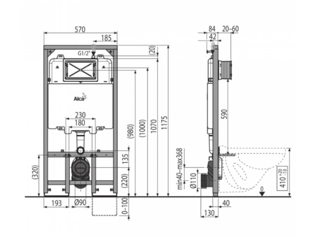Pre montáž závesného WC s pripojovacím rozstupom 180 mm alebo 230 mm