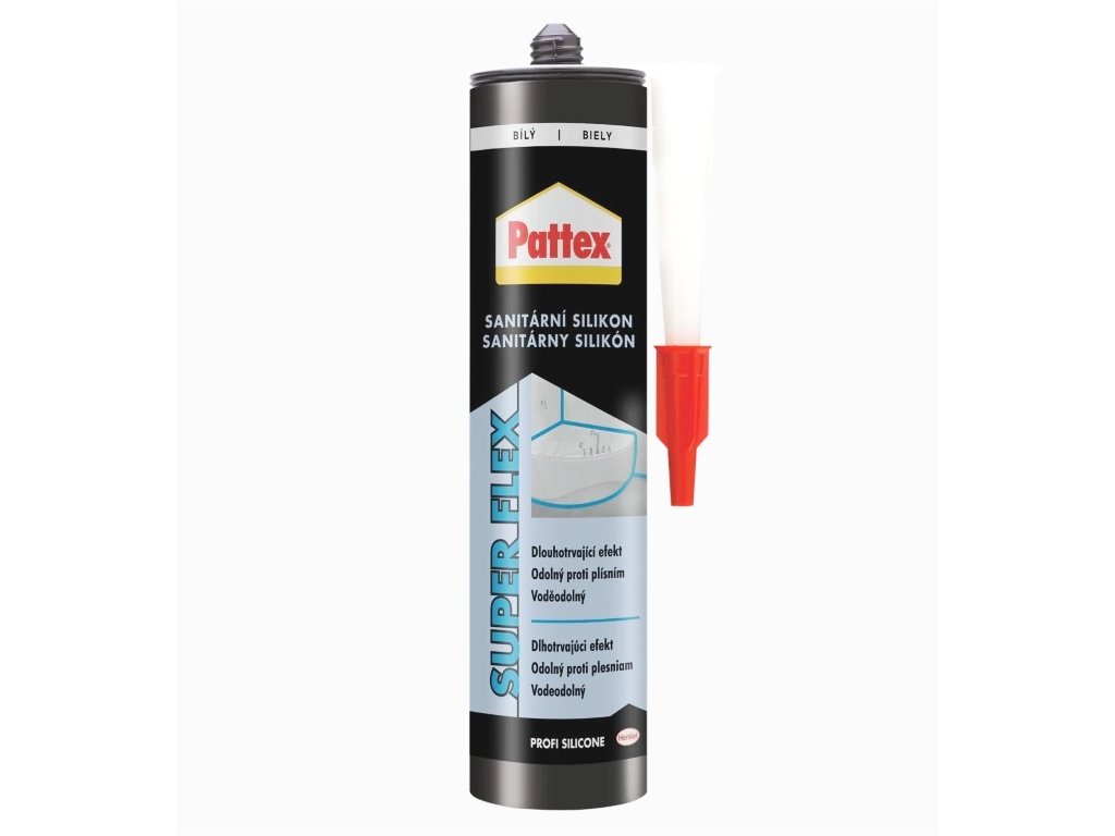 Pattex Sanitárny silikón Super Flex je špeciálny sanitárny silikón na opravu a vyplnenie škár v kuchyniach a kúpeľniach s obsahom fungicídu proti plesniam.