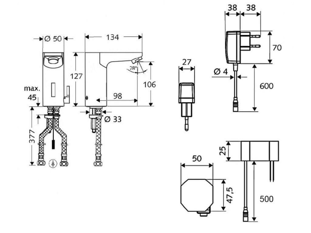 Umývadlová batéria senzorová SCHELL CELIS E, sieťová prevádzka