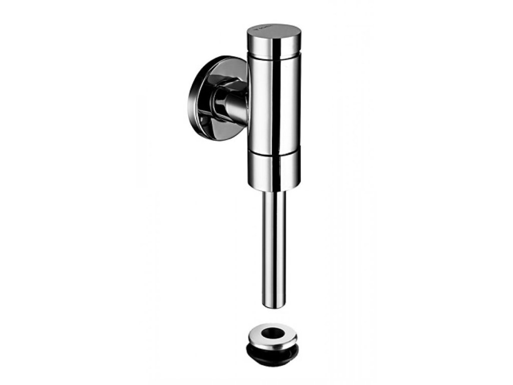 Robustný celokovový tlakový splachovač pisoára SCHELLOMAT BASIC značky Schell, s mosadzným tlačidlom.