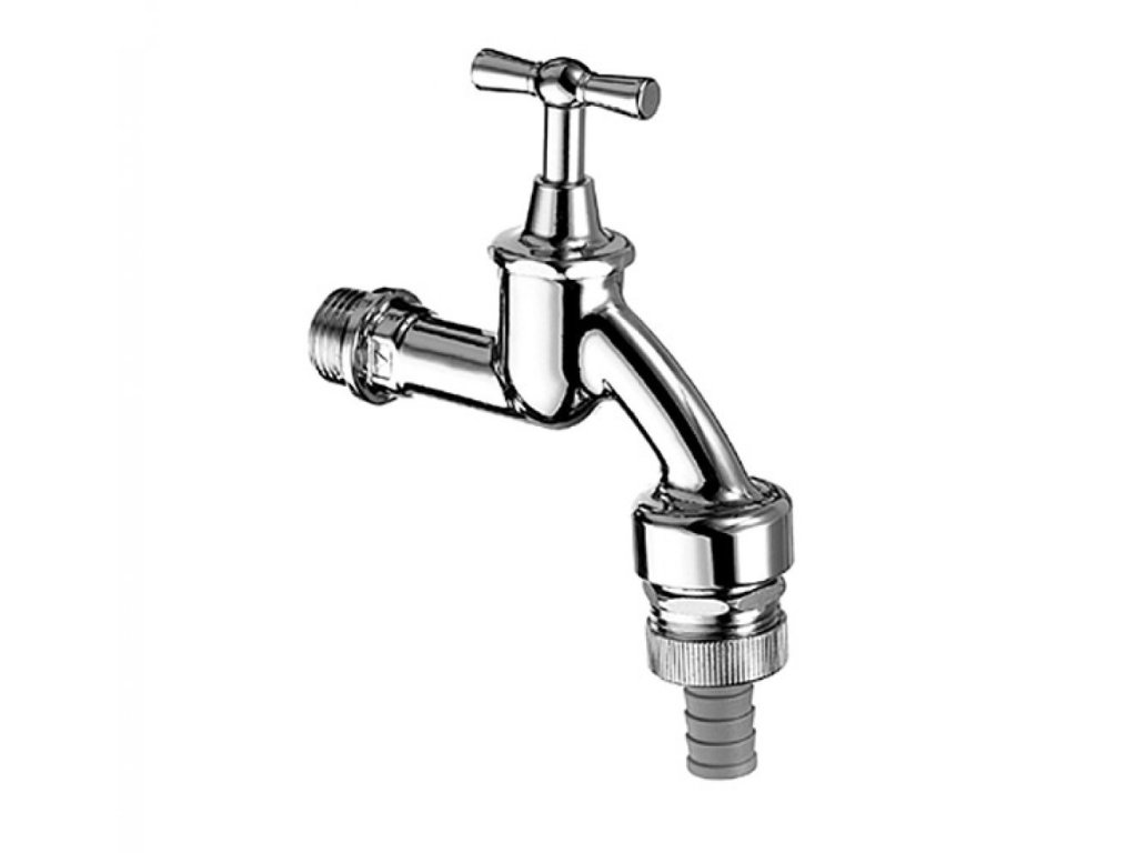 Výtokový ventil značky SCHELL, vršok s otočnou páčkou. So spätnou klapkou a privzdušňovačom potrubia v prietokovej forme. Šróbenie na hadicu.