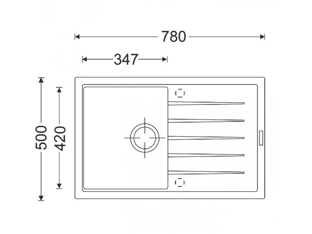 Vonkajšie rozmery drezu: 780 x 500 mm.