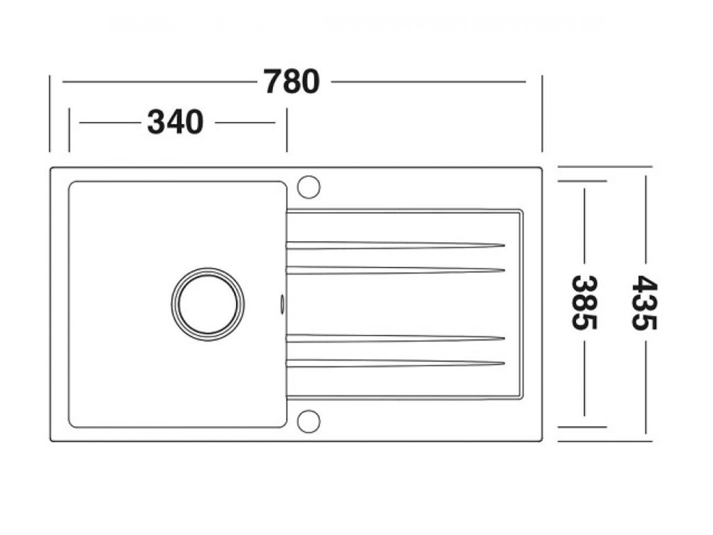 Vonkajšie rozmery drezu: 780 x 435 mm