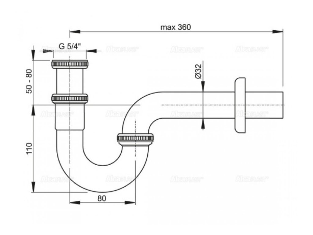 Kovový umývadlový sifón "U", DN 32, s prevlečnou maticou 5/4"