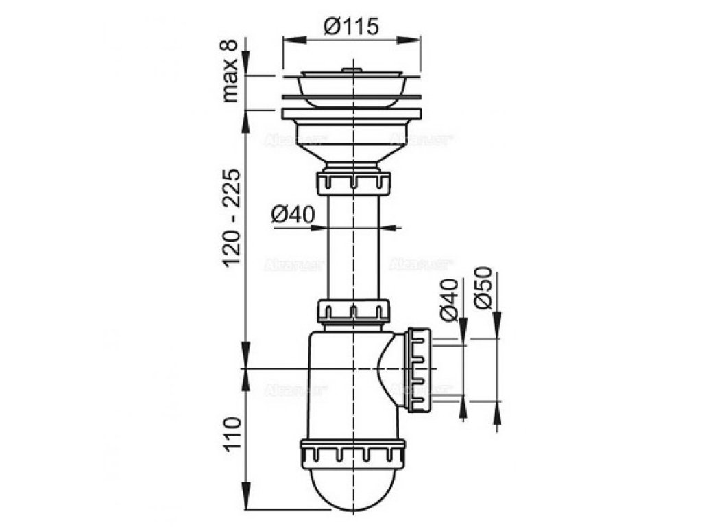Drezový sifón značky Alcaplast, s nerezovou mriežkou DN 115