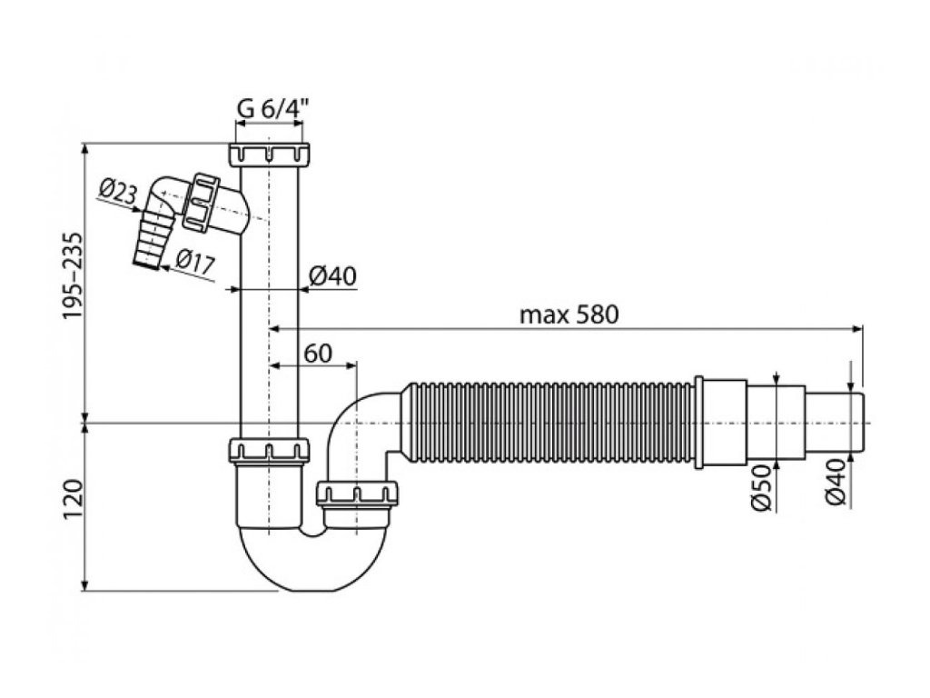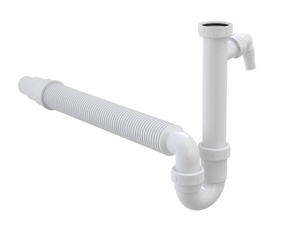 Trubkový sifón s prevlečnou maticou 6/4", dvoma prípojkami a flexi hadicou