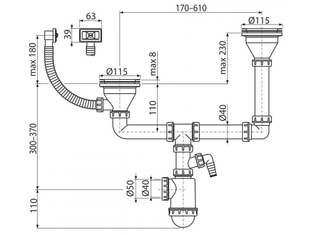 Kľúčová vlastnosť: | odtoková súprava, s prípojkou, s prepadom |