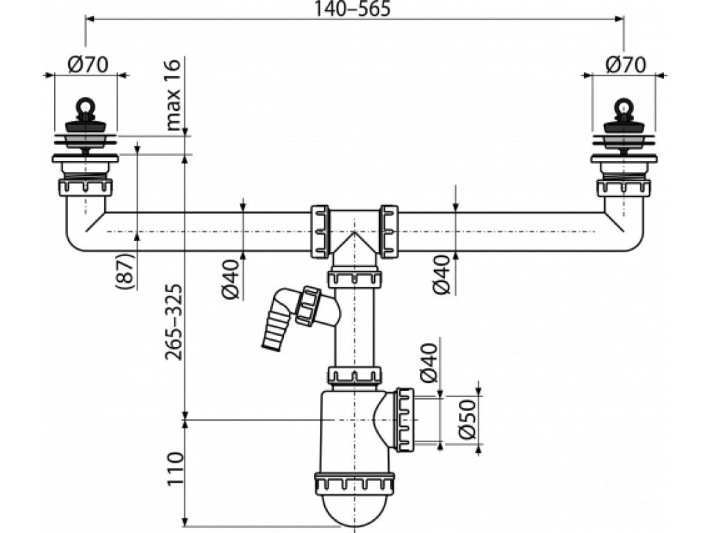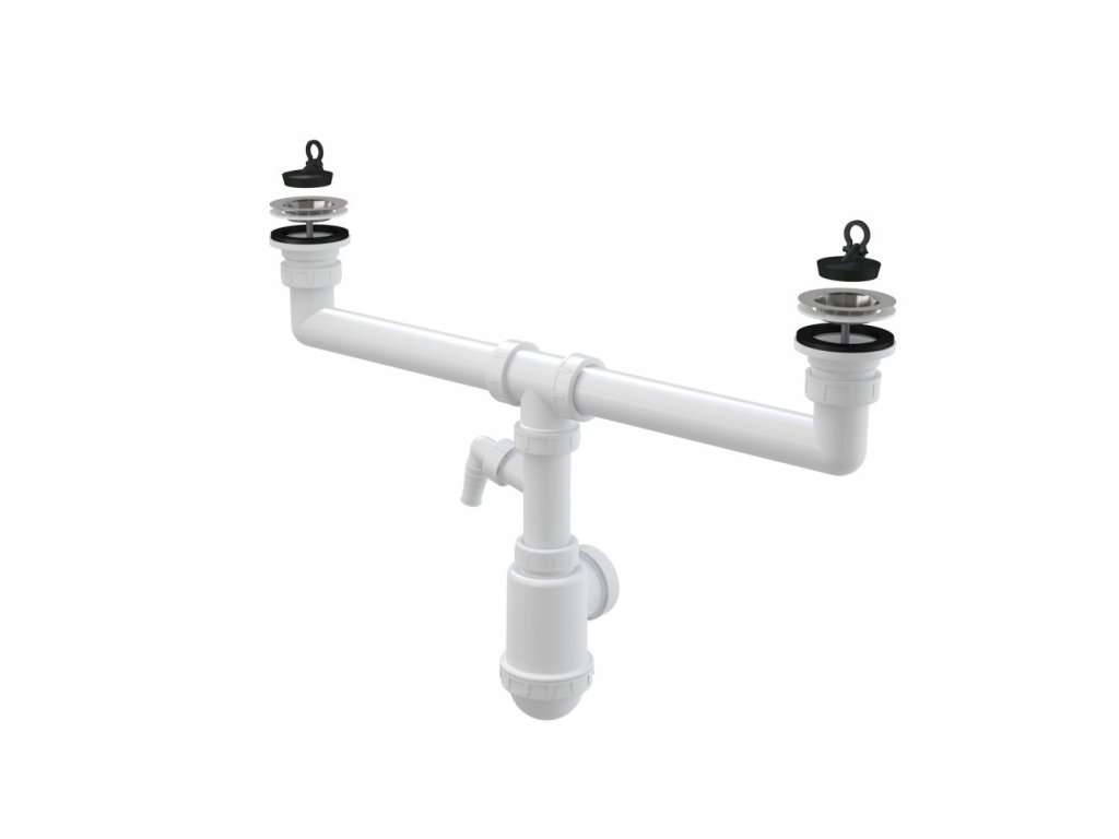 Sifón pre dvojdrez DN50/40 s nerezovými mriežkami DN70 a prípojkou