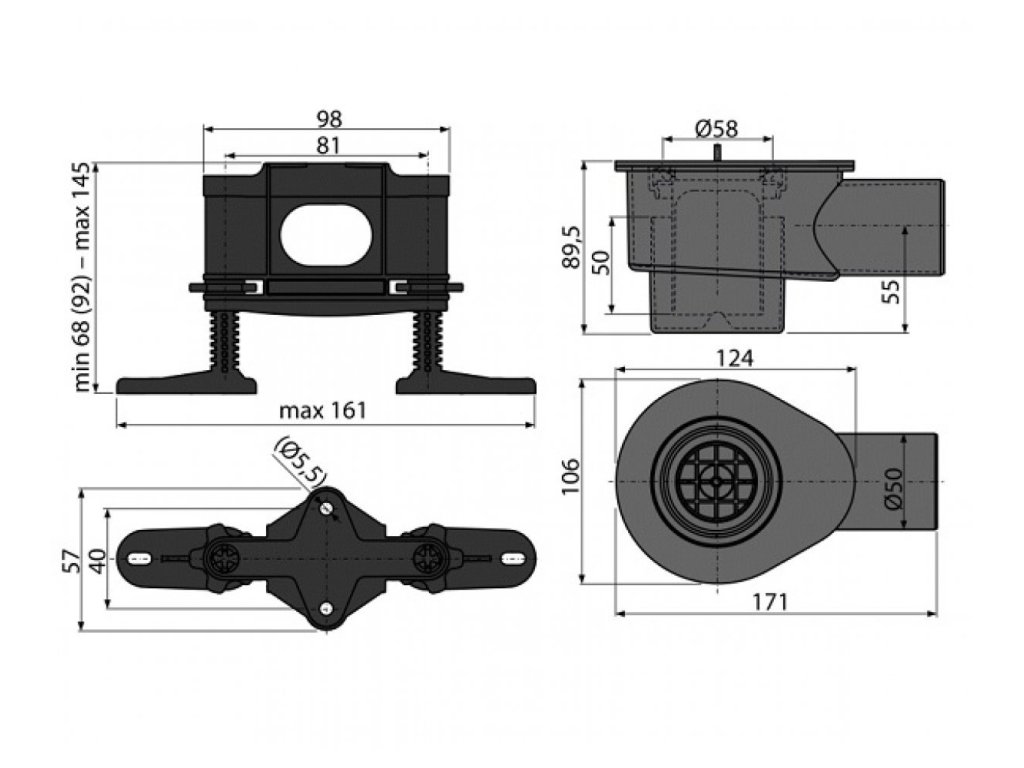 Sprchový sifón DN 50 a sada nastaviteľných nôh