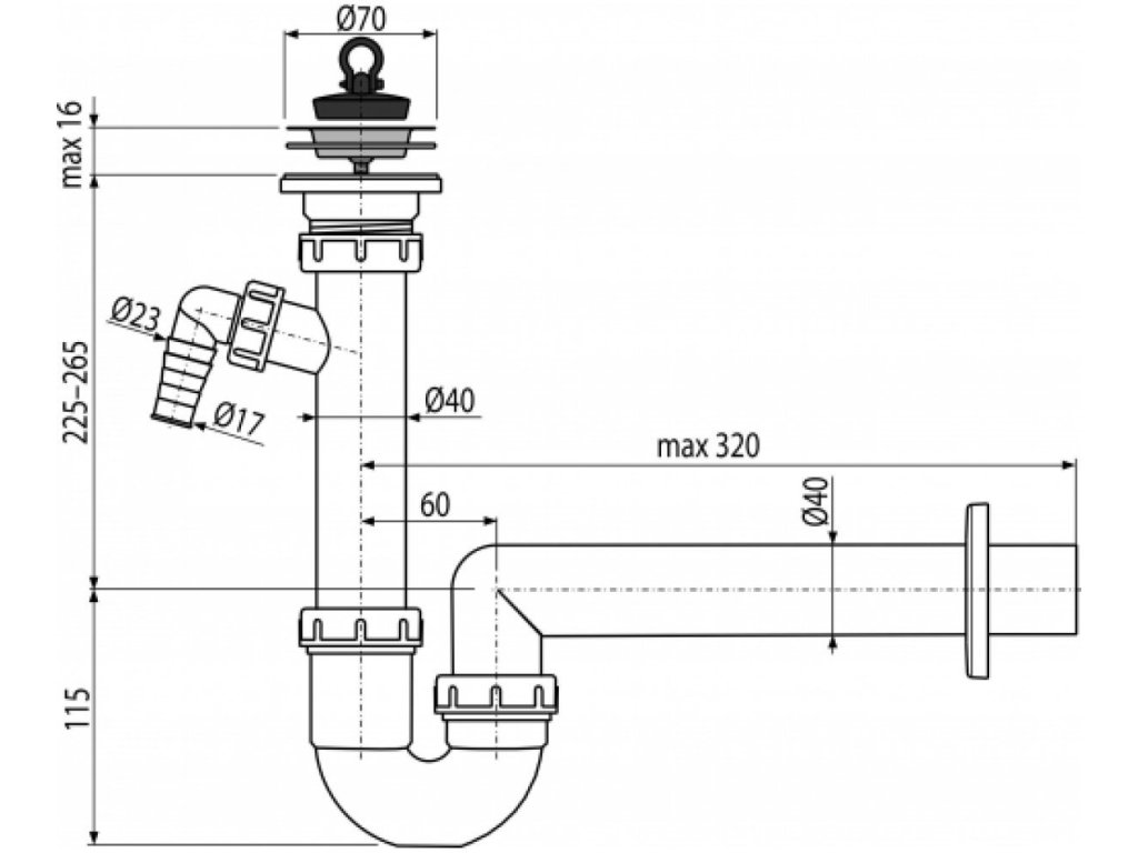 Drezový sifón trubkový DN40 s nerezovou mriežkou DN70 a prípojkou