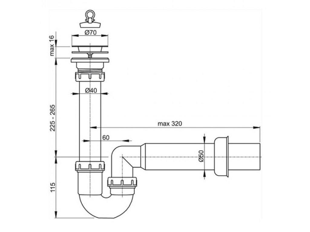 Drezový sifón trubkový DN50 s nerezovou mriežkou DN70