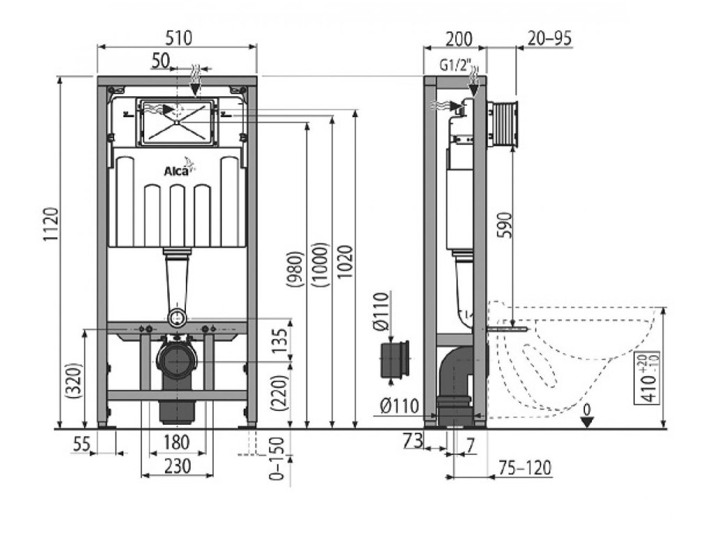 Pre montáž závesného WC s pripojovacím rozstupom 180 mm alebo 230 mm