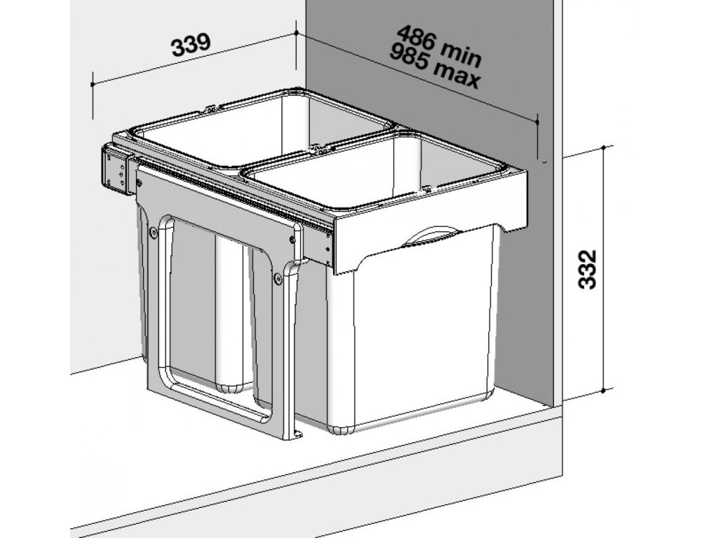 Kôš je určený do spodnej skrinky minimálnej šírky: 400 mm.