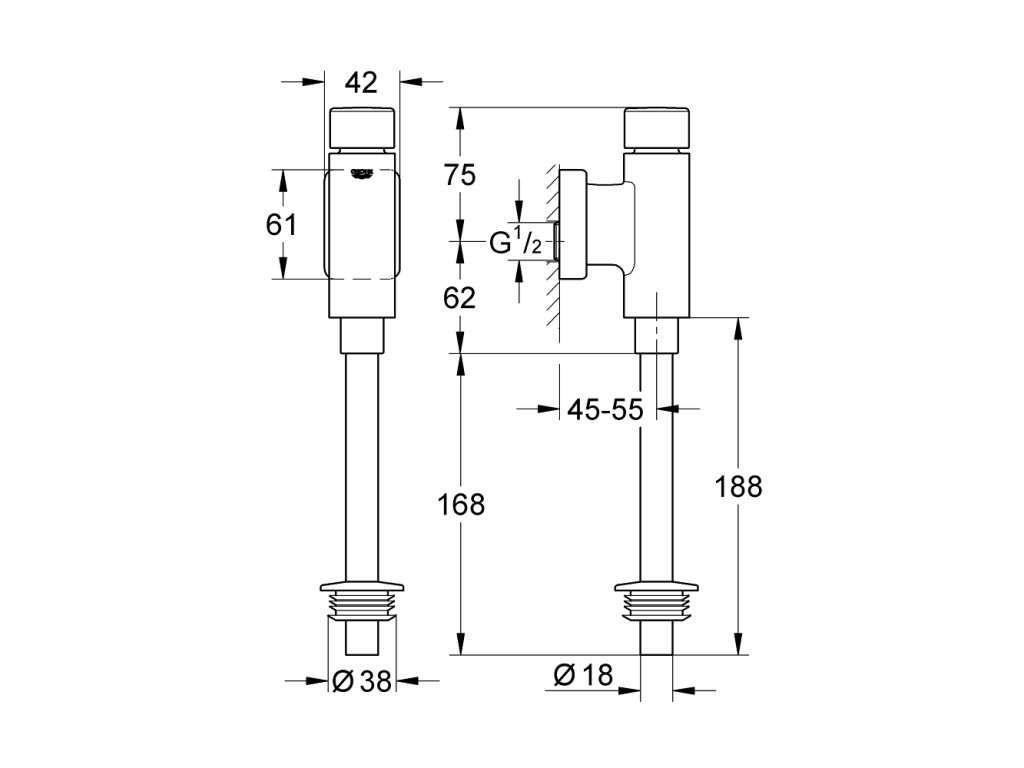 Pisoárový splachovač Rondo značky Grohe.