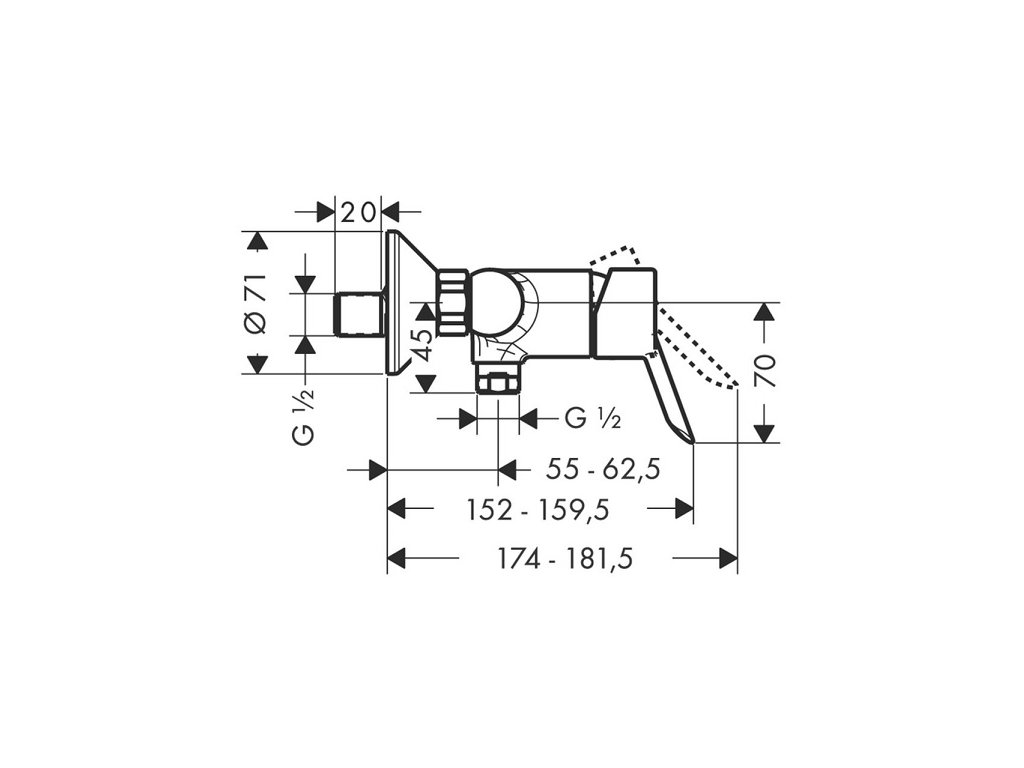 Sprchová stenová batéria FOCUS S značky Hansgrohe, dodávaná bez sprchového príslušenstva.