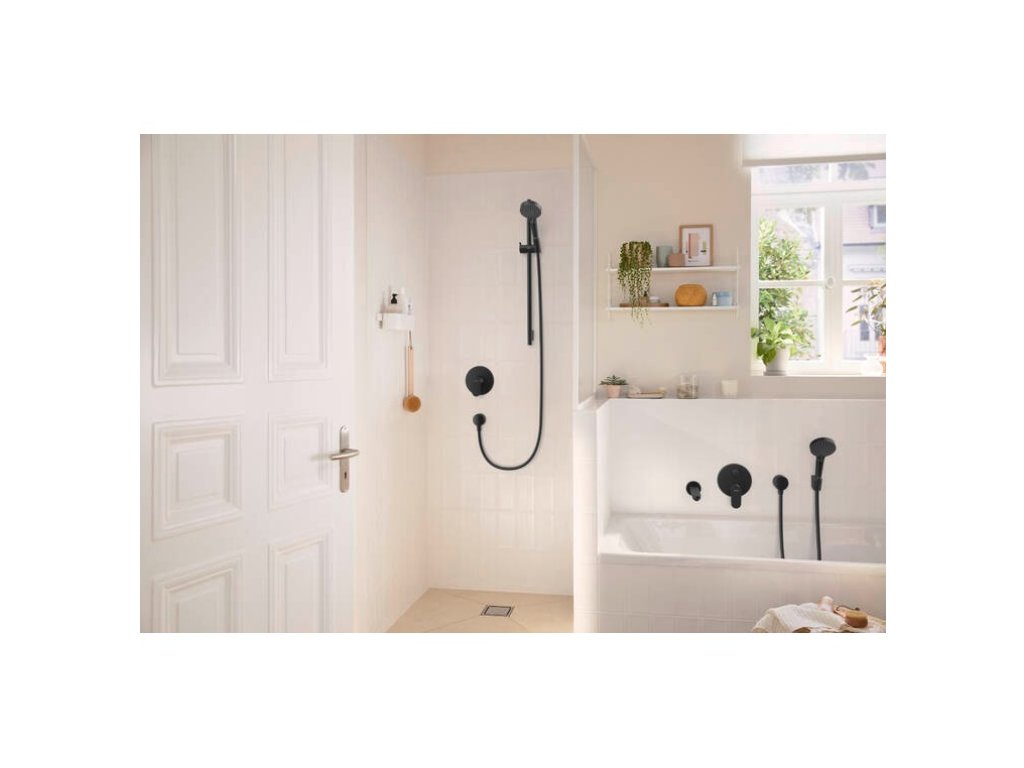 Túžite po kúpeľni, ktorá nie je iba miestom očisty, ale aj oázou pokoja a harmónie? Potom vás isto okúzli podomietková sprchová batéria REBRIS S od Hansgrohe. S touto batériou zabudnite na akékoľvek rušivé prvky. Montážne teleso je ukryté pod omietkou či obkladmi, takže na povrchu vidíte len ozdobnú krytku a ovládaciu páku. To vytvára dojem čistoty a ľahkosti, charakteristický pre minimalistický štýl. Čisté línie, oblé tvary a matný čierny povrch vnesú do vašej kúpeľne moderný a sofistikovaný vzhľad. Batéria je určená pre jedno odberné miesto, ktorým obvykle býva ručná či hlavová sprcha. Pre skompletizovanie je potrebné doobjednať aj montážne teleso, ktoré nie je súčasťou balenia.