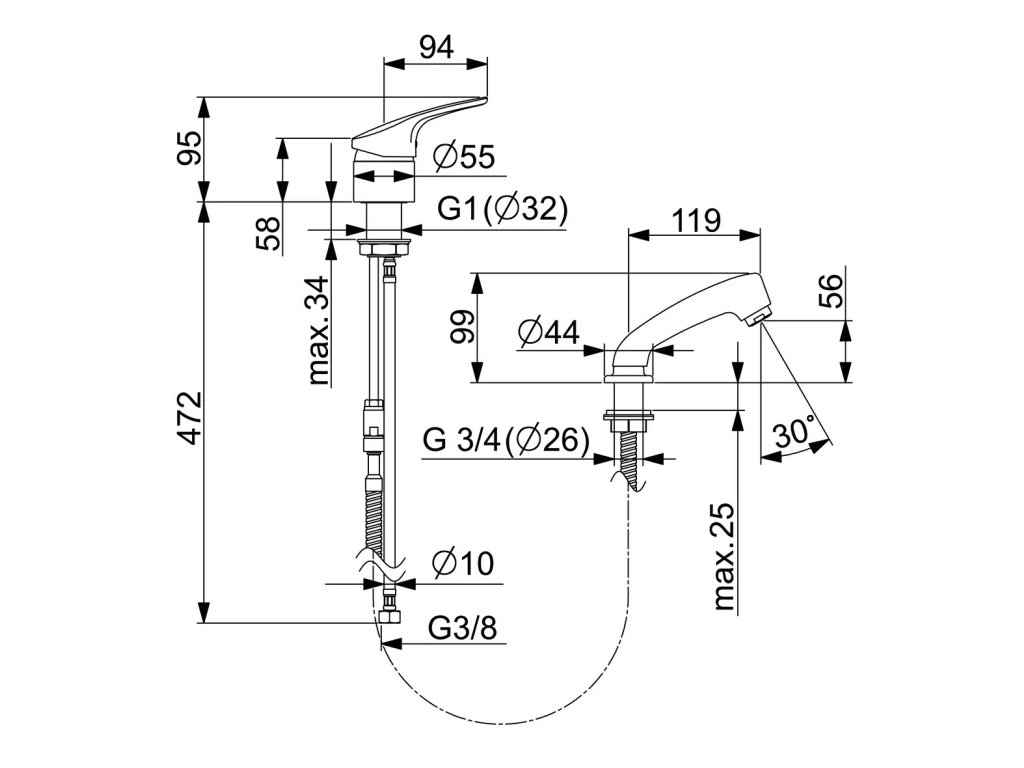 • podomietkové diely: guľatá rozeta, krycia objímka, páka so symbolom teplej a studenej vody;