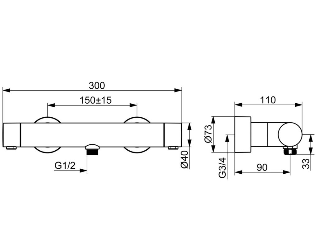 vzdialenosť na inštaláciu: 150 ± 15 mm;