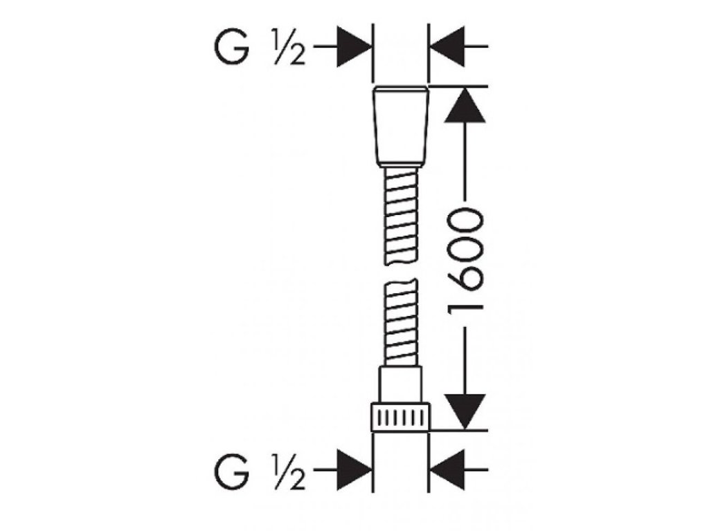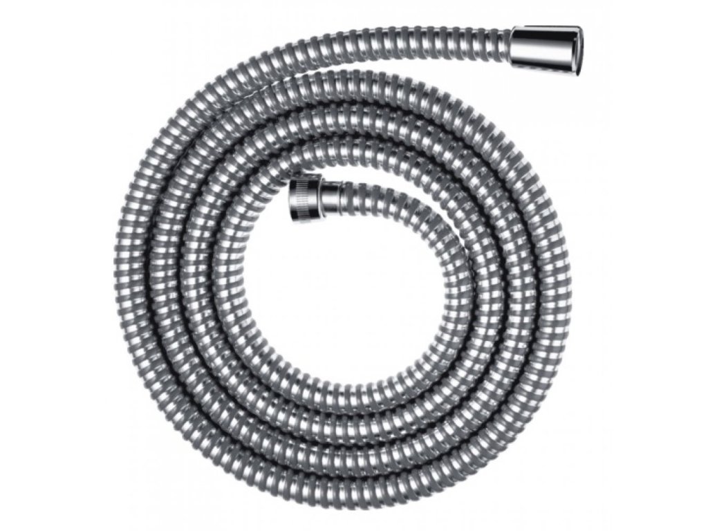 Plastová sprchová hadica Metaflex značky Hansgrohe, so špirálovitým vinutím. Ľahko čistiteľný plastový povlak.