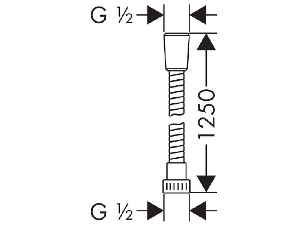 Plastová sprchová hadica Metaflex značky Hansgrohe, so špirálovitým vinutím. Ľahko čistiteľný plastový povlak.