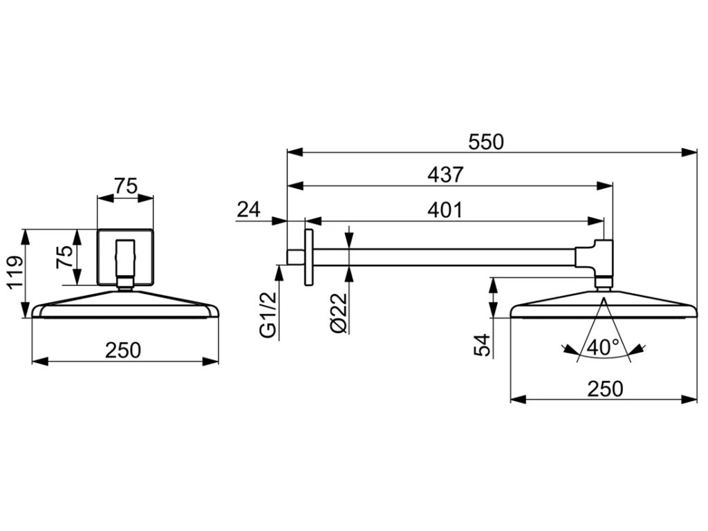 Rozmery hlavovej sprchy: 250 x 250 mm.