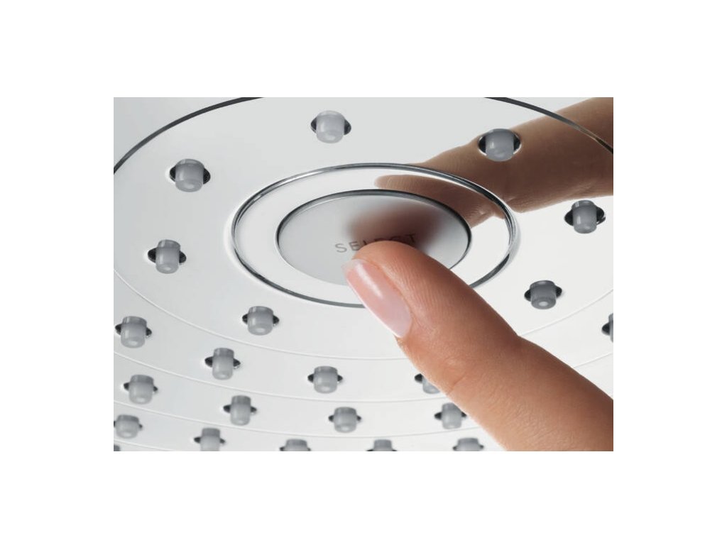 Druhy prúdu: Rain, RainAir - možno prepínať tlačidlom Select na hornej sprche.