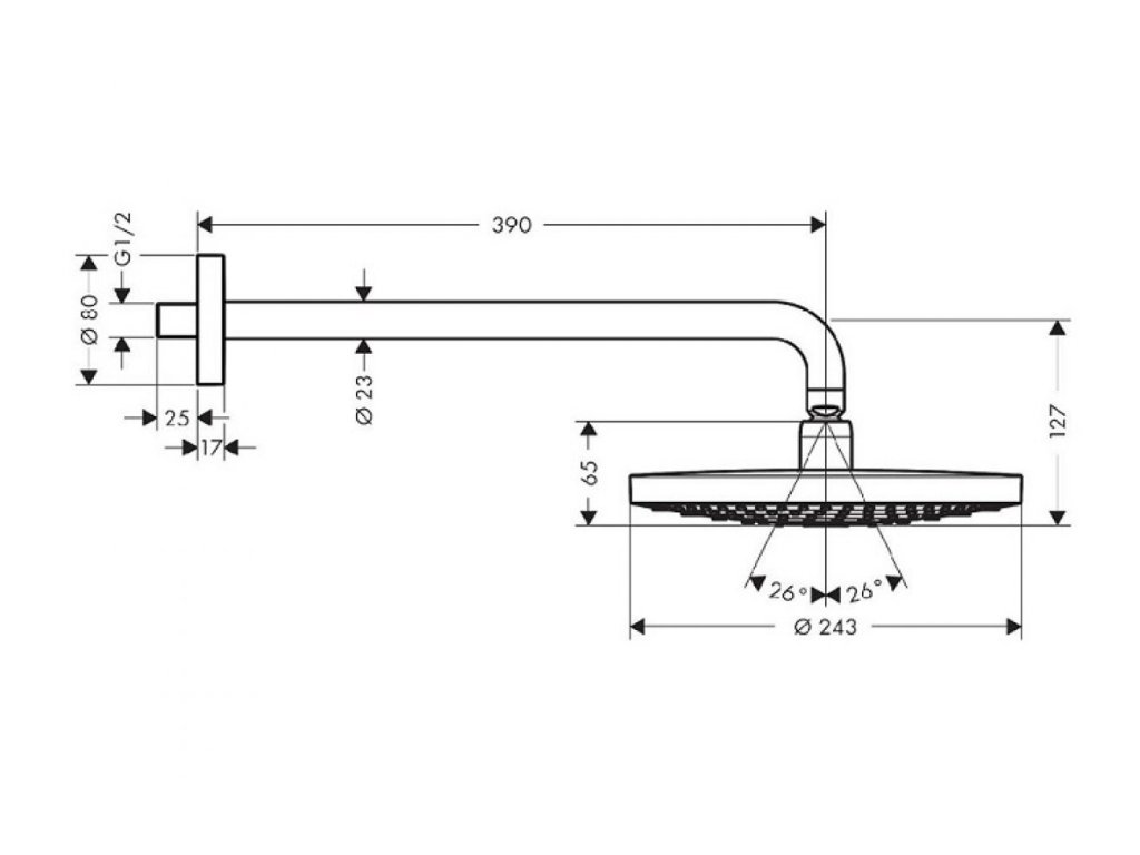 Sprchová hlavica Raindance Select S s priemerom 243mm. S guľovým kĺbom umožňujúcim nastaviť uhol hlavovej sprchy.