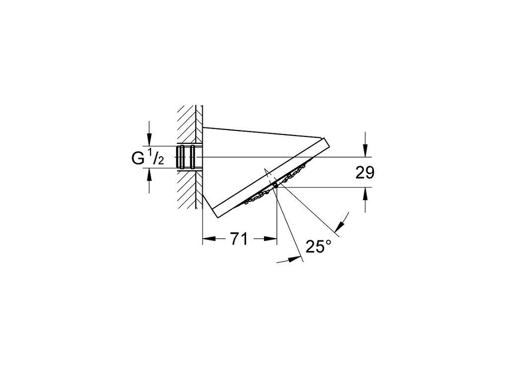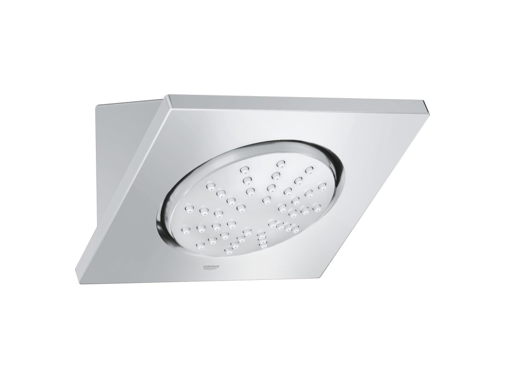 Nástenná hlavová sprcha Rainshower F-Series 5″ značky Grohe. S regulátorom smeru prietoku na kĺbe (otočný o +/- 12°).