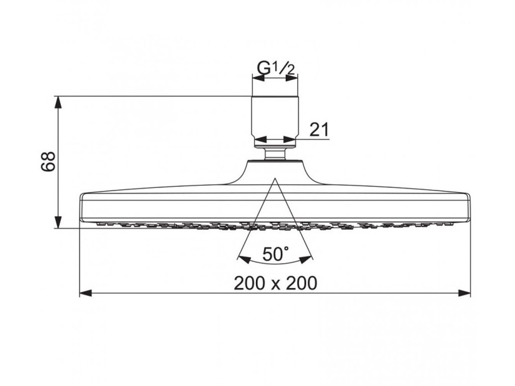Rozmery hlavovej sprchy: 200 x200 mm.