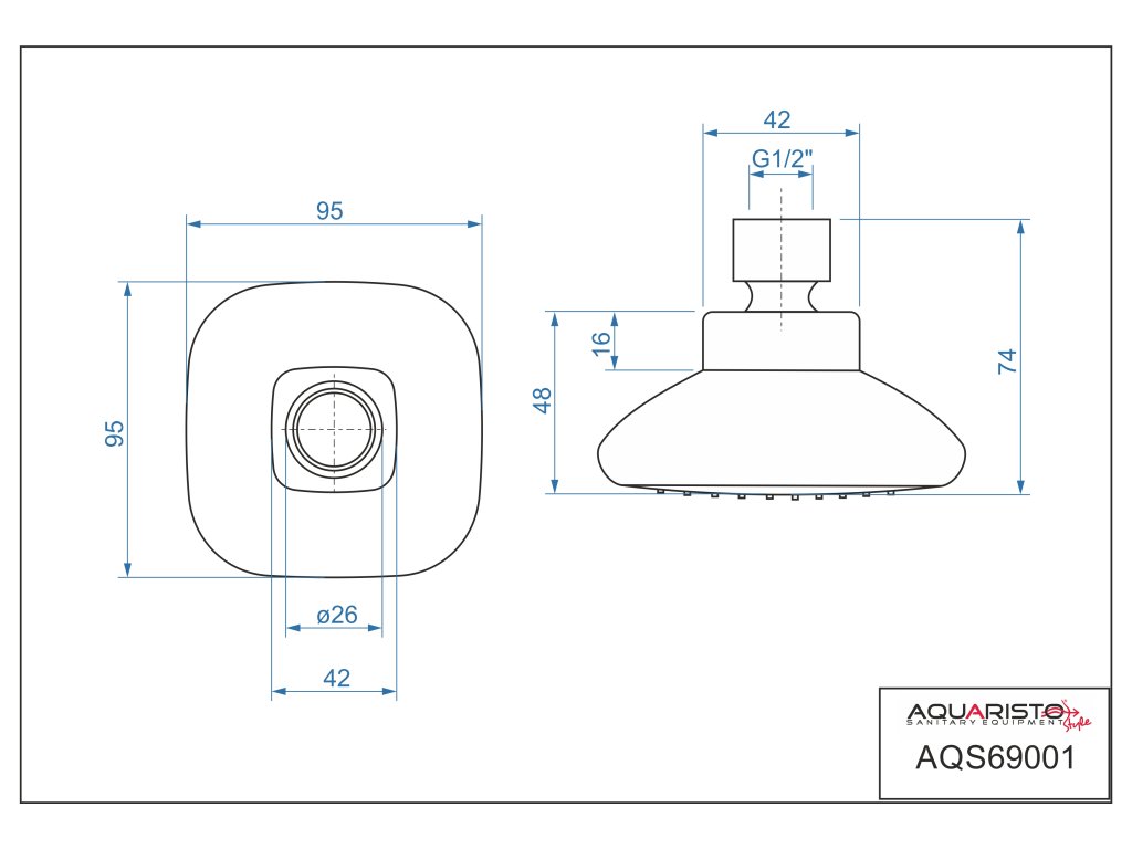 Rozmer hlavovej sprchy: 95 x 95 mm.
