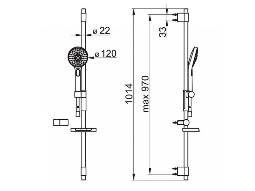 • sprchová tyč s nastaviteľnou roztečou úchytov, dĺžka 970 mm, priemer 22 mm.