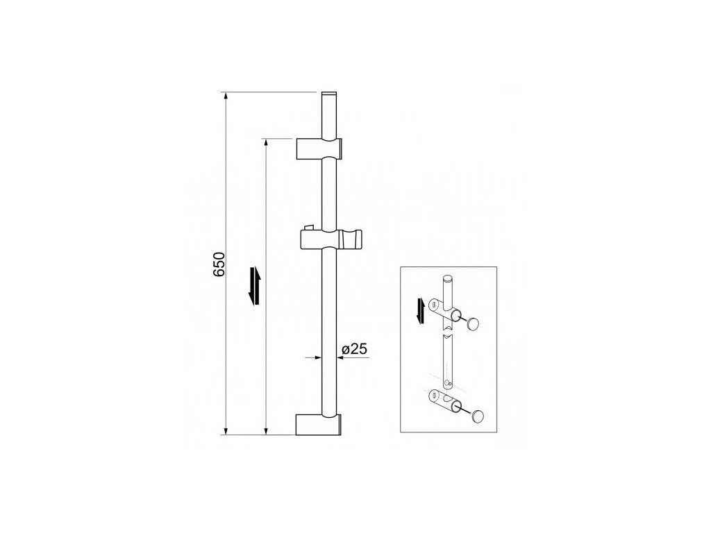 • sprchová tyč dĺžky 600 mm, s priemerom 25 mm