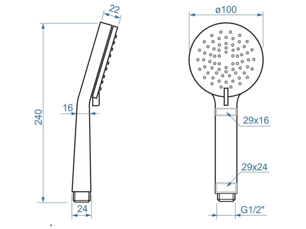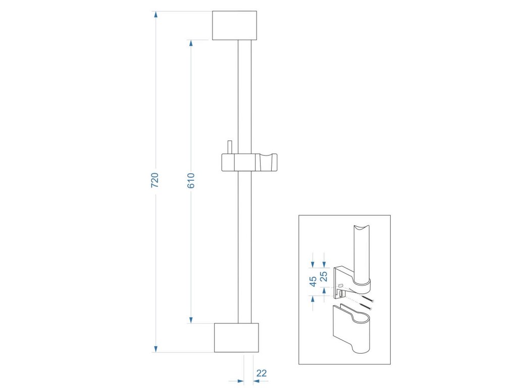 • sprchová tyč dĺžky 600 mm, s priemerom 22 mm