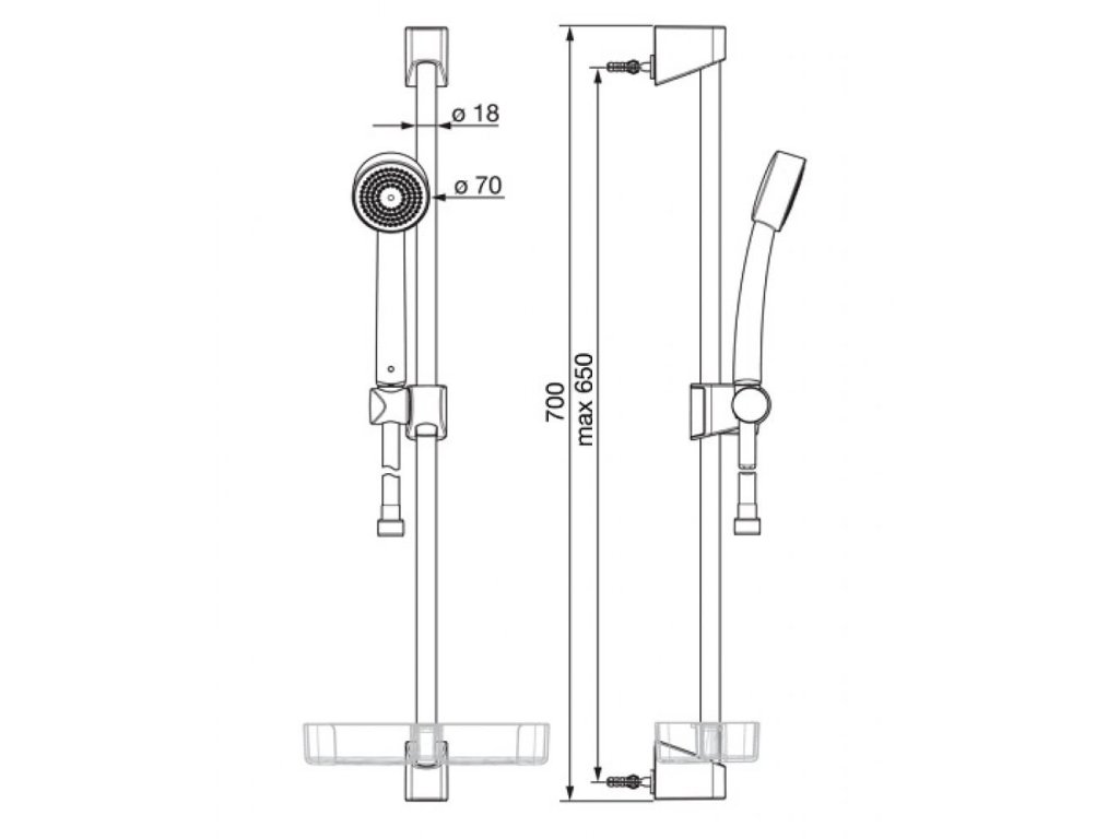 • sprchová tyč - 650mm