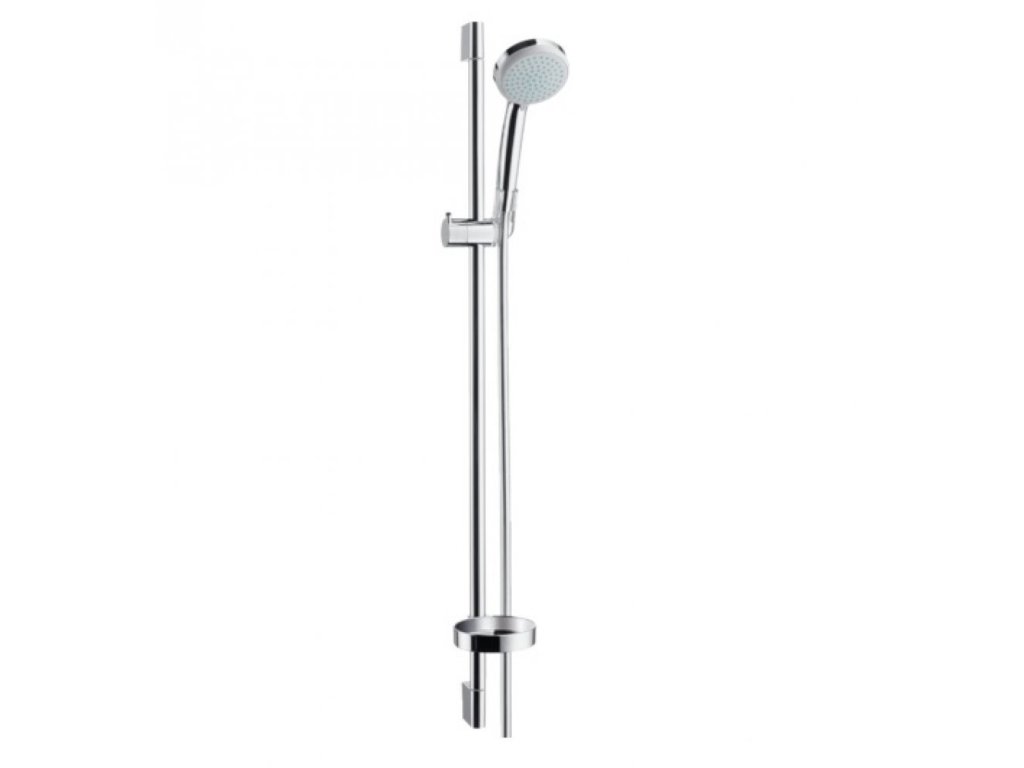 • ručná sprcha Croma 100 Vario, 100 mm, 4-polohová, druhy prúdu: Rain, normálny prúd, masážny prúd, prúd pre zmývanie šampóna. Prepínanie druhov prúdu otočením koncovky.