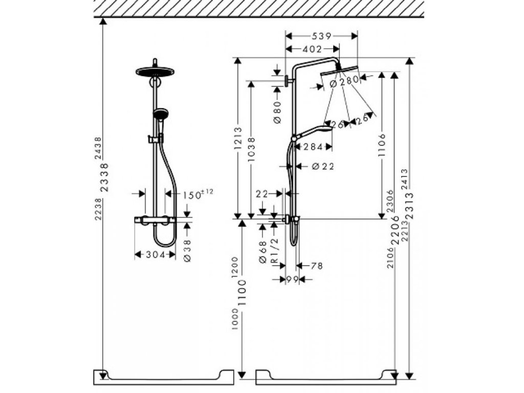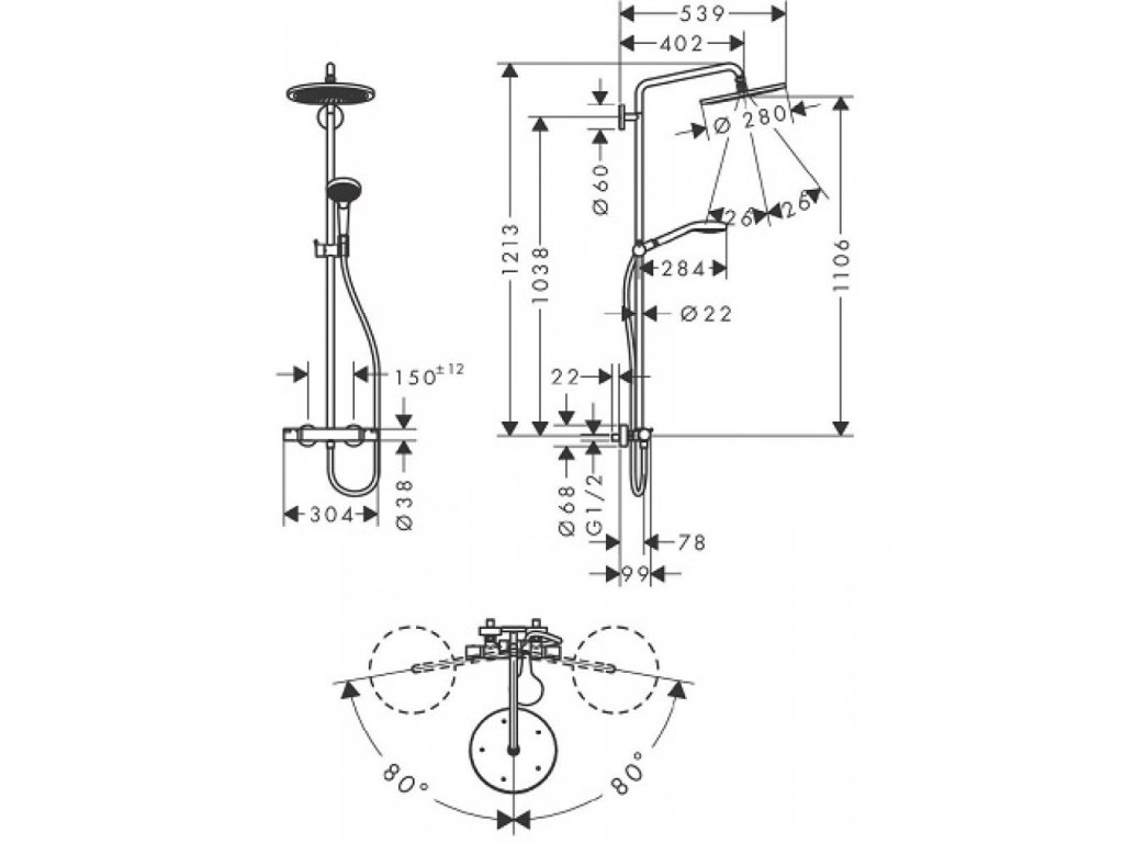 Sprchový systém CROMA SELECT S s termostatom, hlavica 280mm